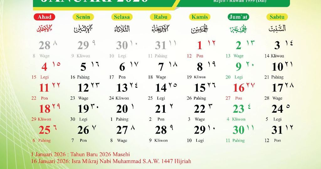 JANUARI 2026 (Rajab – Sya’ban 1447 Hijriah)