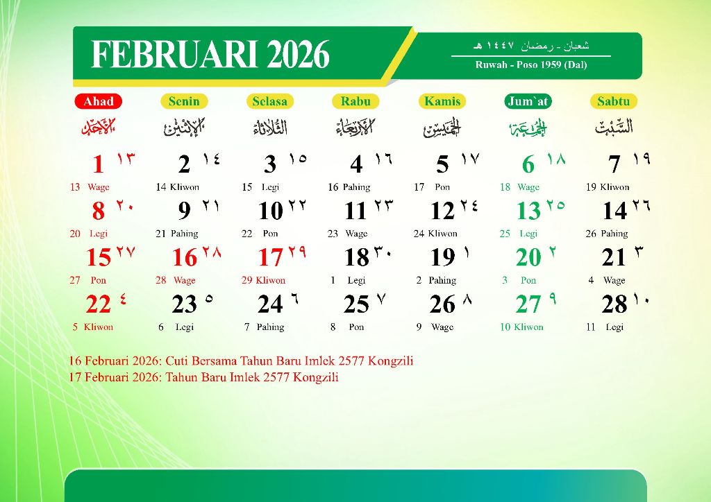 ֎ Awal Ramadhan 1447H 1 Ramadhan 1447H 19 Februari 2026Kamis