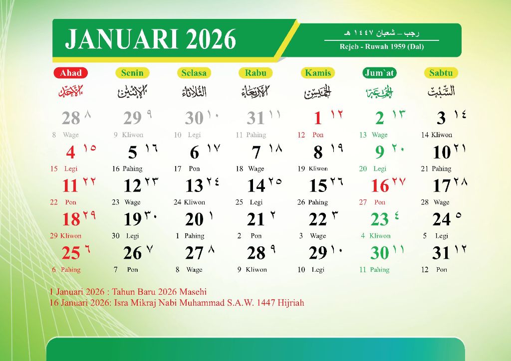 JANUARI 2026 (Rajab – Sya’ban 1447 Hijriah)