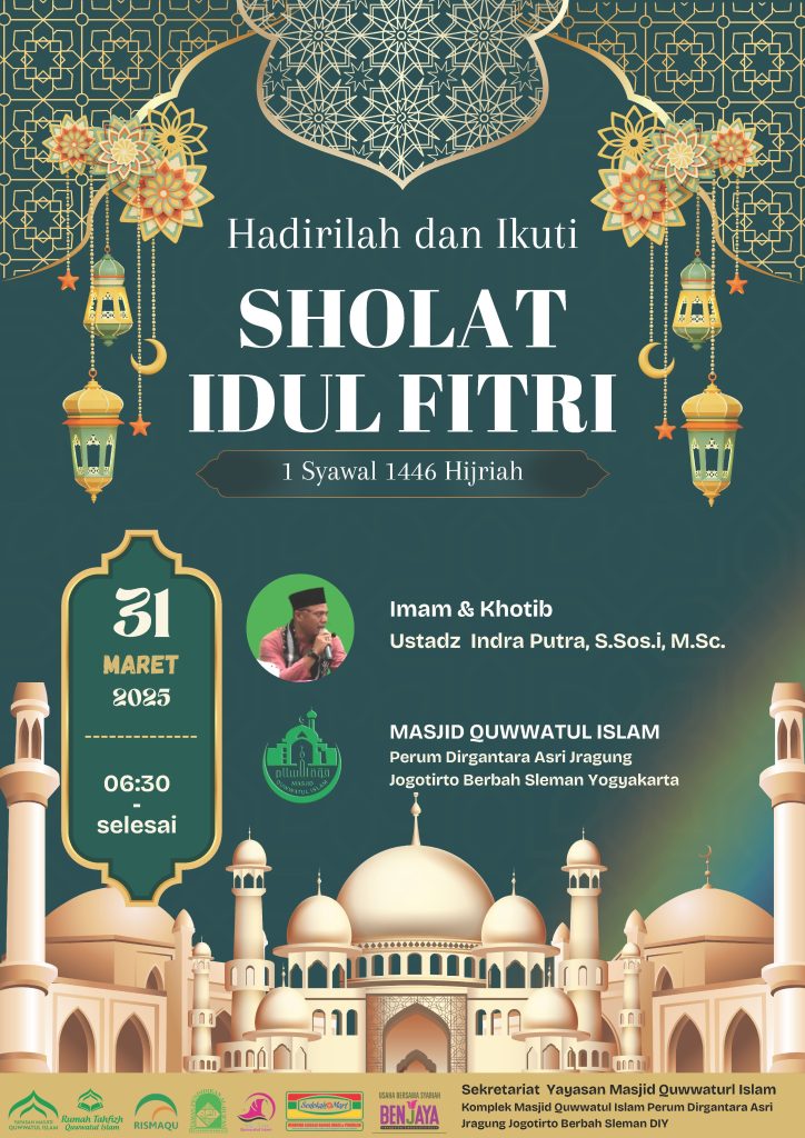 - Takmir masjid Quwwatul Islam mengadakan sholat Iedul Fitri 1446 H yang akan diselenggarakan pada Senin 31 Maret 2025, pukul 06.30WIB di Areal Masjid Quwwatul Islam