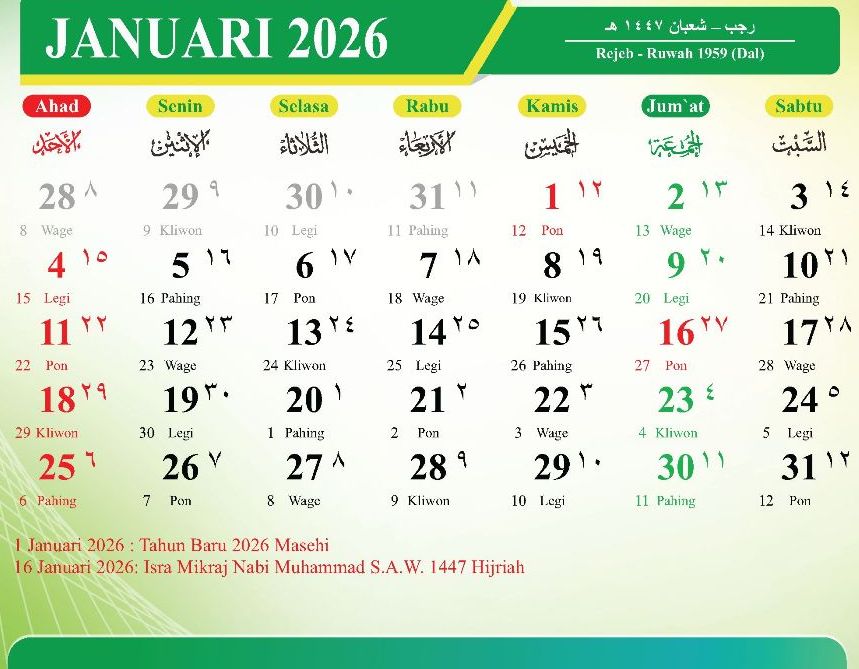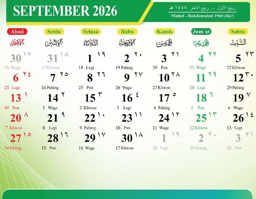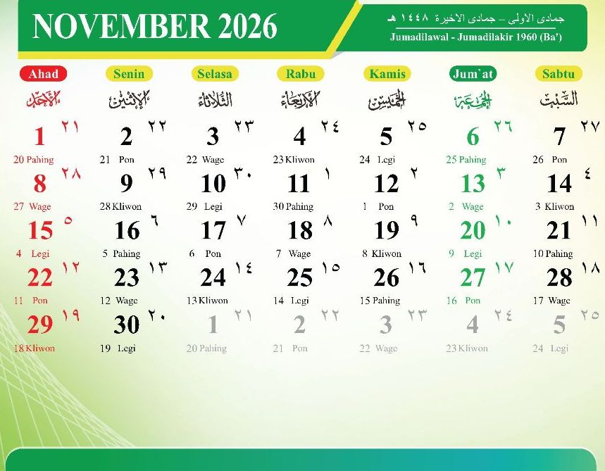 Desember 2026 (Jumadilakhir – Rajab 1448 Hijriah)