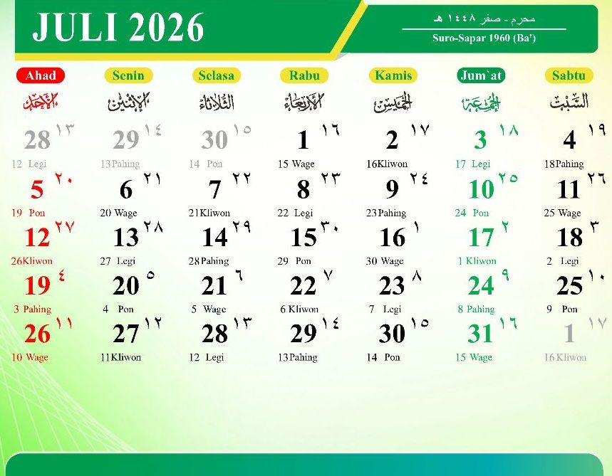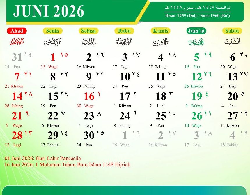 JUNI 2026 (Dzulhijah 1447 Hijriah – Muharram 1448 Hijriah)
