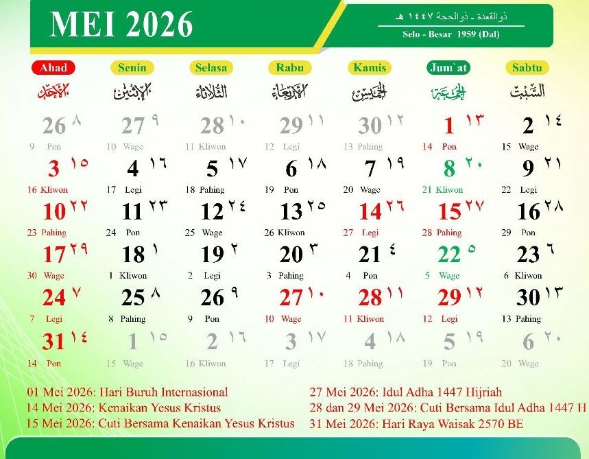 MEI 2026 (Dzulqaidah – Dzulhijah 1447 Hijriah)