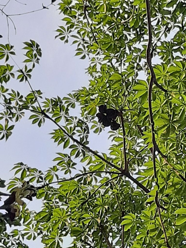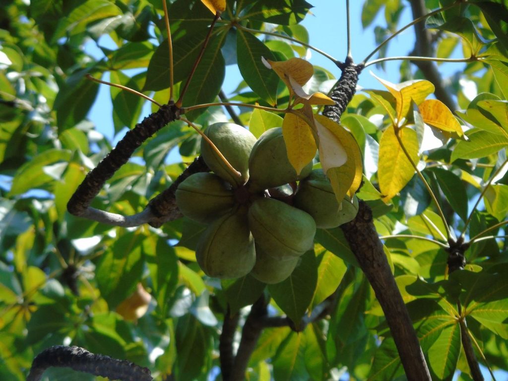 - Daun bertipe majelmuk menjari, bertangkai 12,5–23 cm, berkumpul di ujung ranting. Anak daun berjumlah 7-9, jorong lonjong dengan ujung dan pangkal meruncing