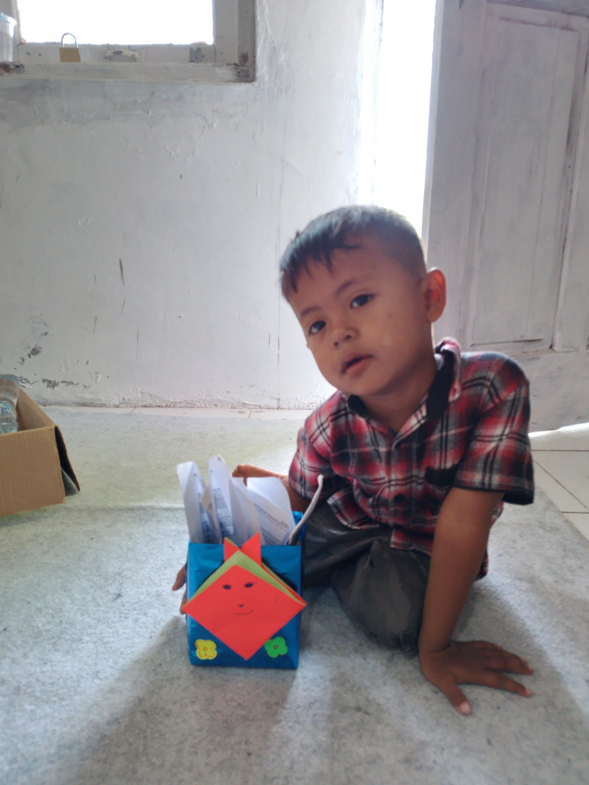 Membuat tempat pensil dari kardus bekas (3)