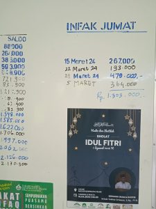 - Infaq pelaksaan sholat idul fitri terkumpul sejumlah; Rp.1.000.000,- (Satu juta rupiah)