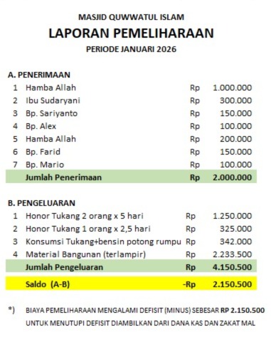 Laporan Program Perawatan/Perbaikan Masjid Quwwatul Islam