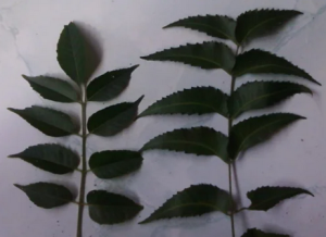 • Daun majemuk letak berhadapan, menyirip genap, bentuk lonjong dengan tepi bergerigi, ujung runcing, tersusun seperti spiral mengumpul pada ujung rantai, panjang sampai 5-7 cm, lebar 3-4 cm.