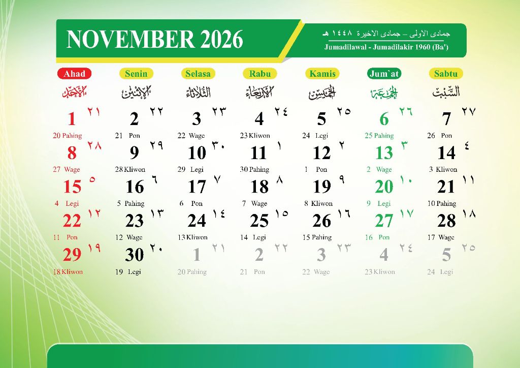 November 2026 (Jumadilawal – Judmadil Akhir 1448 Hijriah)