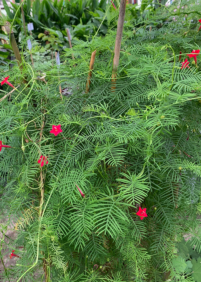 Dari semua anggota Genus Ipomoea, Tanaman Rincik Bumi (Ipomoea quamoclit L., Incarvillea argyi H.Lév., Clitocyamos pinnatifidus St.-Lag., Convolvulus pennatifolius Salisb.) inilah yang paling unik. Bunganya memiliki warna yang mencolok dengan bentuk daunnya yang sangat beda dengan anggota suku kangkung-kangkungan lainnya. Warna merah merona dari bunganya sangat kontras dengan warna-warna di sekitarnya yang dominan warna hijau dari dedaunan.