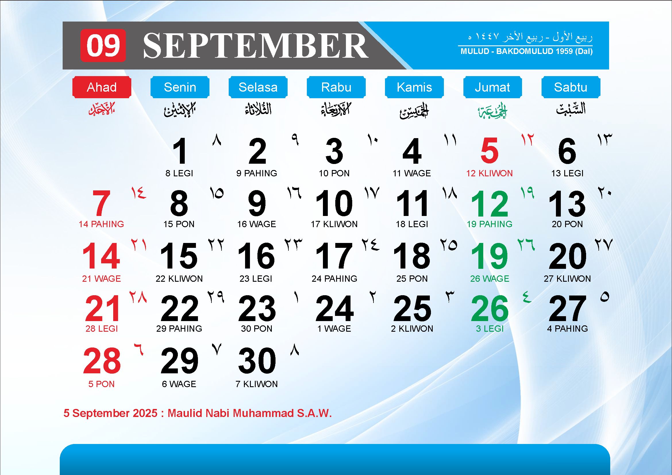֎ Maulid Nabi saw. 1447H 12 Rabiul Awal 1447H 5 September Jumat